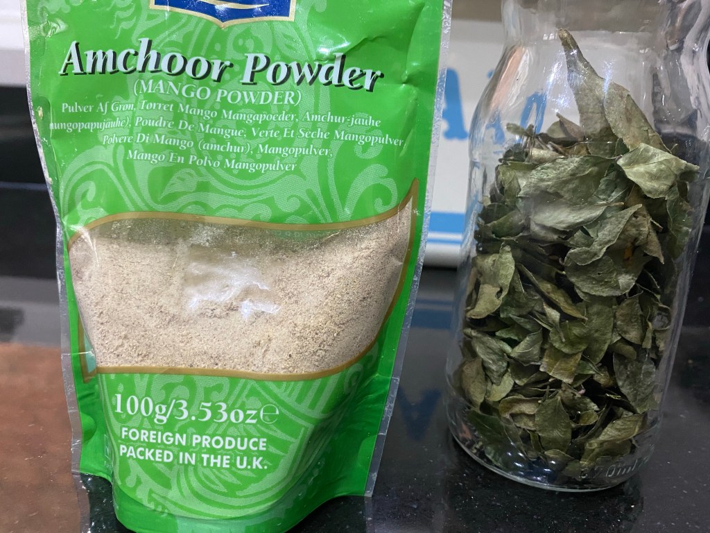 Kasthuri methi or fenugreek Is a powerful beast. The fragrance lingers and also emirates from your pores – trust me. But I love it.Methi leaves fresh can be used for so many dishes and the dried version just add depth to a curry. Fenugreek seeds are a must for aubergine dishes. Also let me introduce you to Amchoor powder (dried mango powder). For any dishes that need a little tang..)