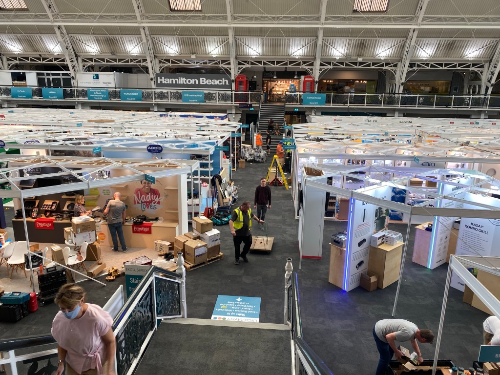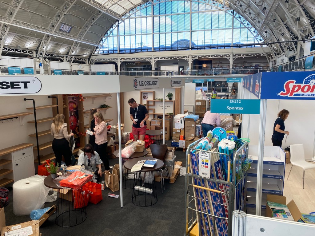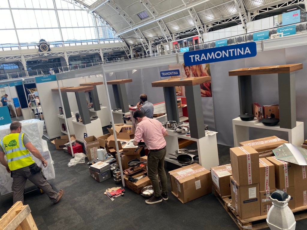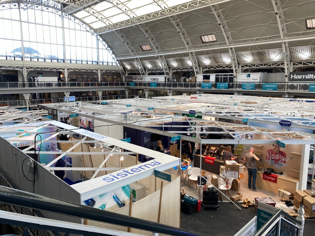 Inside there was the normal organised chaos of unbuilt stands, boxes of products strewn in the aisles and casually dressed sales & marketing people. People missing cups, hooks, products and other bits in that last few hours of preparation. Oh, then there were too many tables and chairs/stools, not enough lighting, too much lighting, no passes, need more passes, when does the show open and close.