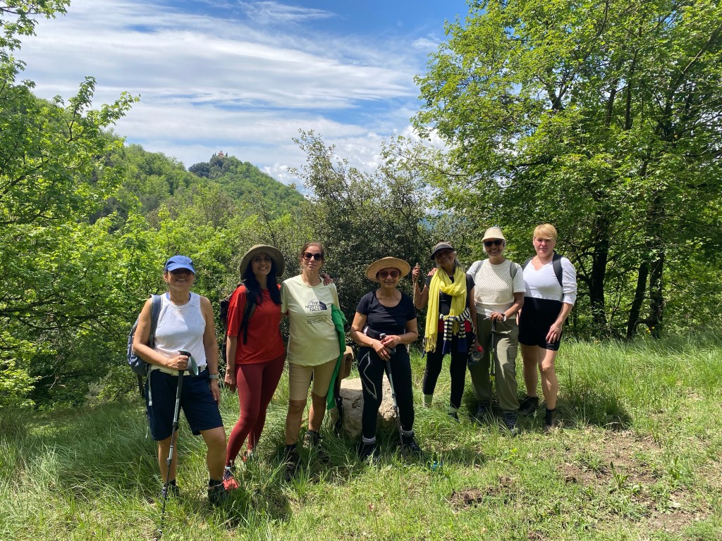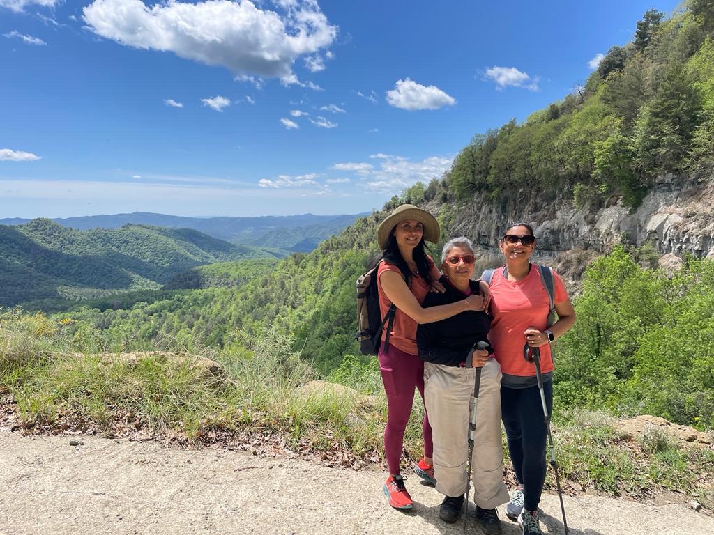 The first walk up was supposedly quite easy but a lot started feeling the impact of the altitude . Fatima and Sati in particular needed support.