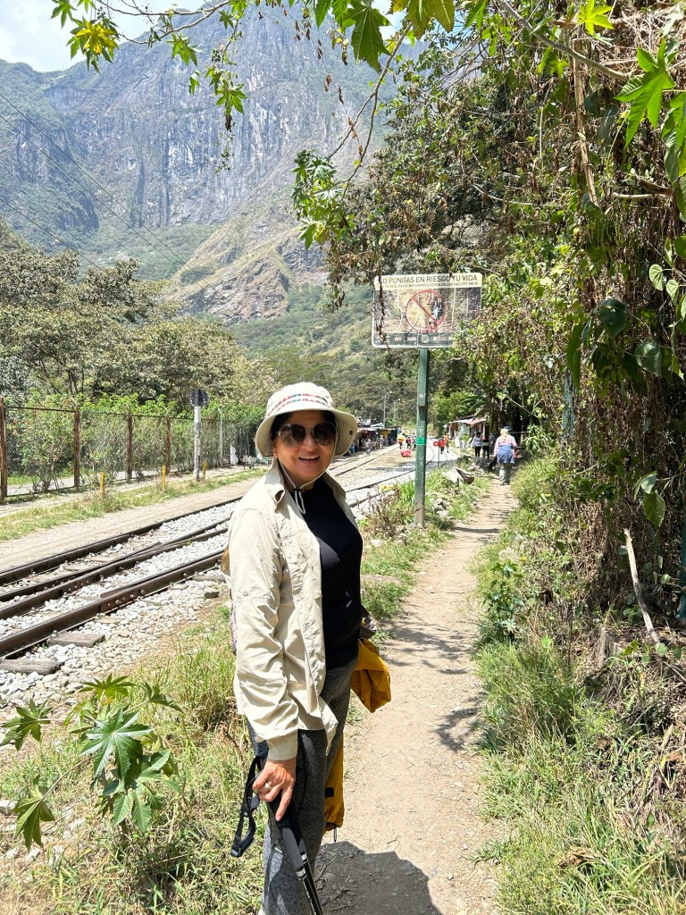 We then went up to the Hidroelecttica station point which was the last stage of the trek to Macchu Picchu. Here you can also get the train which is what Rekha did. We had lunch and then walked along the rail track to Aguas Calientes.