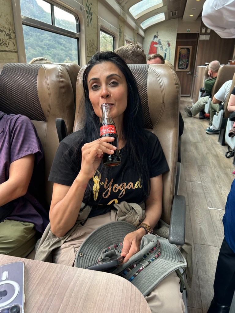 After descending back to Aguas Calientes we just about managed to catch the train back to Ollantaytambo . To maximise the tourist experience the train has a glass ceiling.