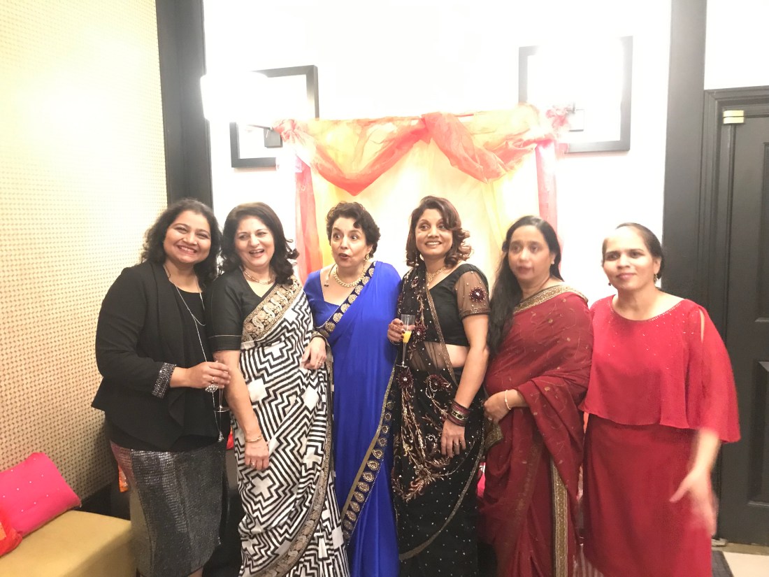 17:30 The event planning team are all looking glam – Suman in electric blue sari, Sati in her silk pattered number, Deepali was the lady in red,Manasi in shimmery black, Parvati in her sharara and Preethi looking classy with her hair up in 60s stylie. Don’t worry we did have the obligatory visit to the ladies’ toilets with pins to adjust various saris – Suman’s and mine!!Ive said it before no Indian function is complete without it.