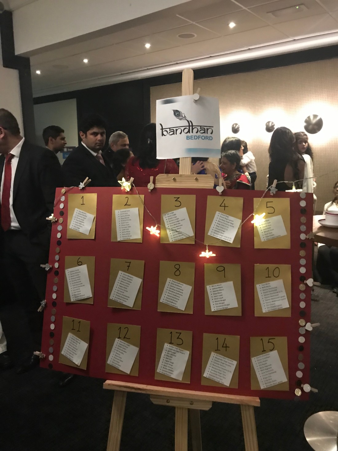 18:20 Welcome everybody – no we don’t have a red carpet !! How much can we give for £35!! Jeez what the hell has happened- all these guests are turning up early (Tejal!!) or on time. Don’t they know it’s an Indian function Luckily we are ready for them with the welcome drink of bubbles and for the teetotallers there is Shloer. Hmm there would be if I hadn’t left it in the boot of my 🚙. Emergency phone call to base – “bring Shloer now, over and out”.Holding measures agreed with caterer- orange juice quick ! And relax. Think we should have had clipboards? Cash was exchanged for last minute guests (they owe you Aparna 😉).